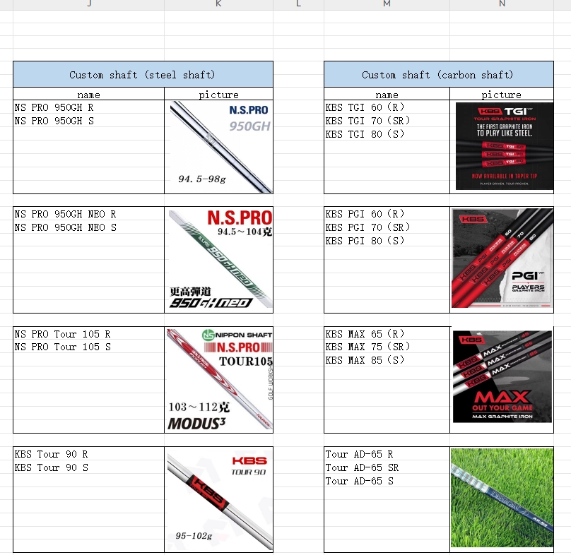 Shaft Options: DG/PROJECT X/TOUF AD/KBS/TENSEI/NS PRO